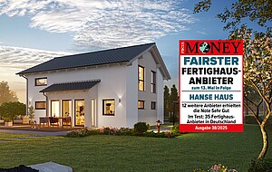 Wie schon in den vergangenen Jahren wurde Hanse Haus von FOCUS-MONEY für "Höchste Kundenzufriedenheit" ausgezeichnet. Nach einer Online-Befragung zur Zufriedenheit von Kunden belegte Hanse Haus den 1. Platz unter den deutschen Fertighaus-Anbietern.