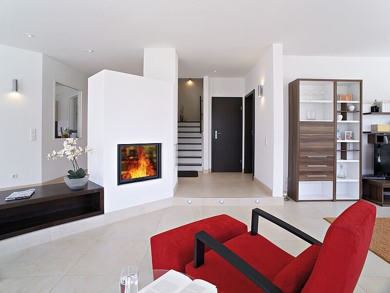 Das Passivhaus kommt ohne direkte Wärmequellen aus, jedoch gibt es Menschen, die und sei es nur der Gemütlichkeit wegen, nicht auf ihren heiß geliebten Ofen verzichten wollen. Denn Fakt ist: Feuer gibt einem Raum eine ganz eigene Atmosphäre und strahlt eine besondere Wärme aus.
