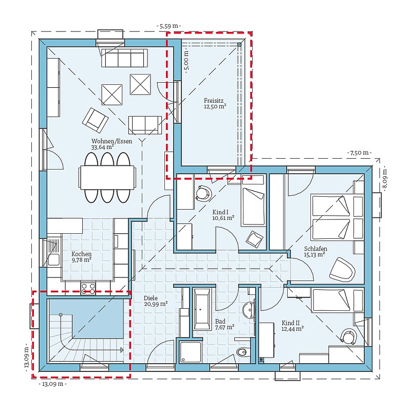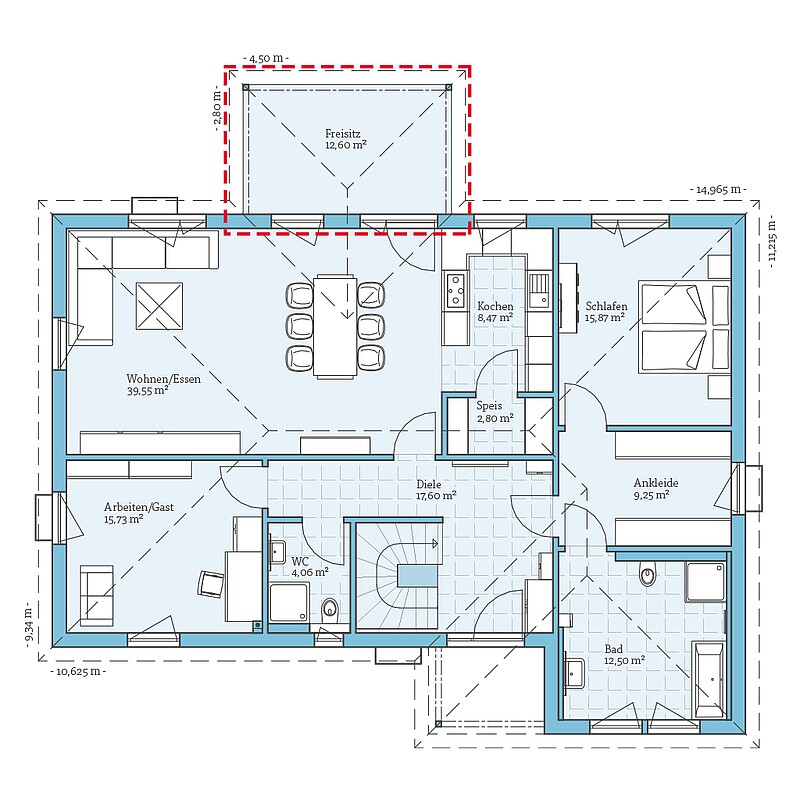 Es ist nicht immer leicht, den perfekten Grundriss für sich selbst zu finden. Daher haben wir eine Vielzahl an Vorschlagsentwürfen für Sie konzipiert. Doch natürlich planen wir Ihr Haus nach Ihren Wünschen und Bedürfnissen. Die Liste der Grundrisse ist der Gesamtgröße nach aufsteigend sortiert.