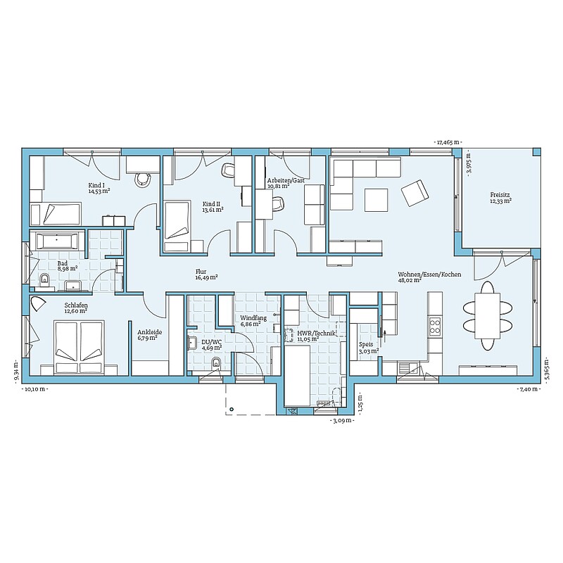 Bungalow-Grundriss mit 140 m² Grundfläche