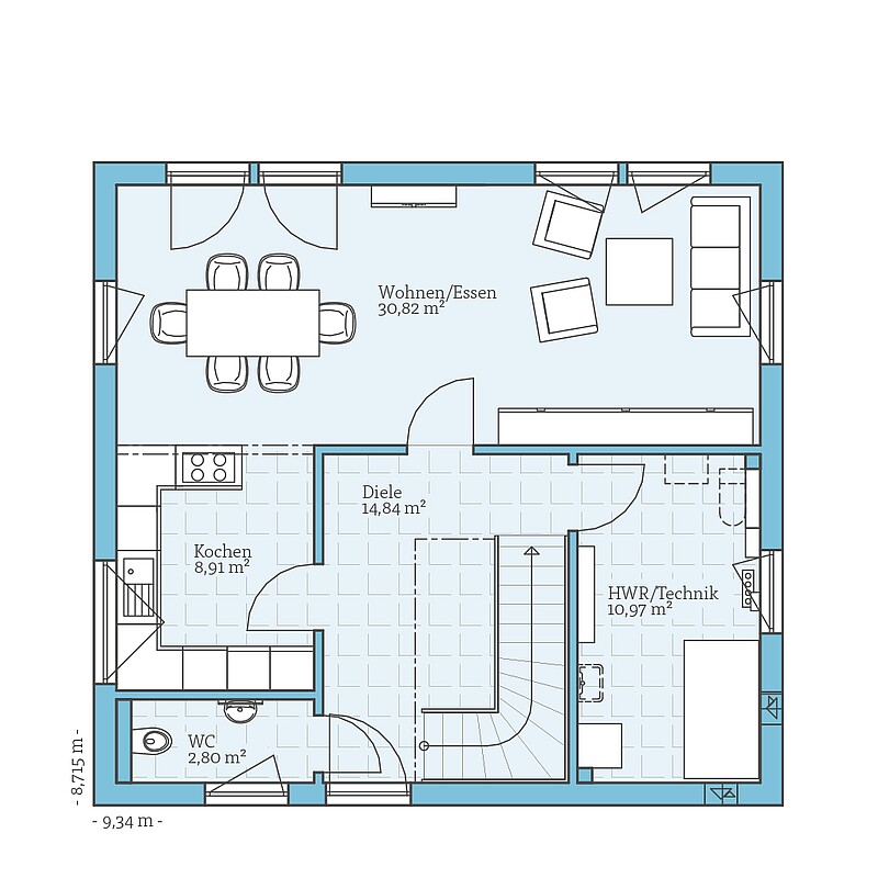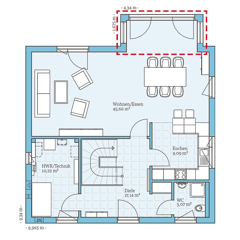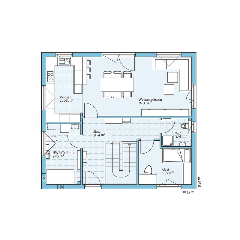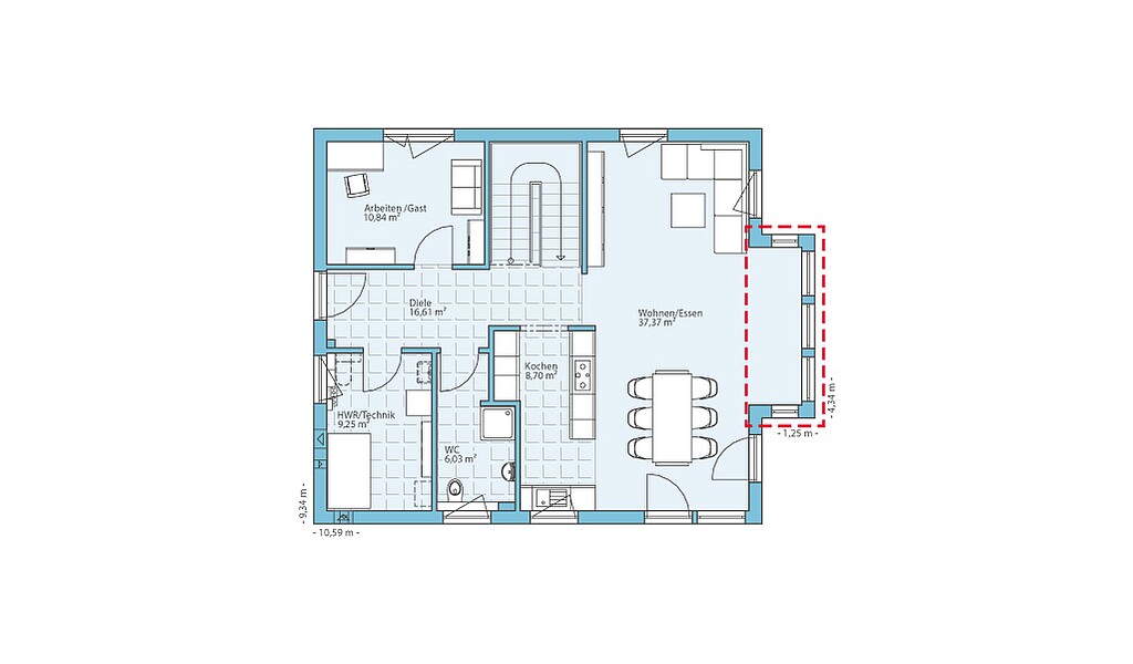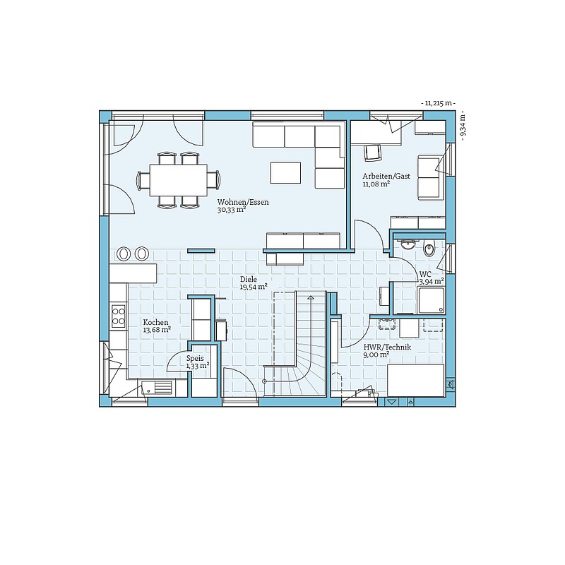Einfamilienhaus-Grundrisse mit 134 m² Grundfläche – Planungsoption Erker & ausgelagerter Technikraum