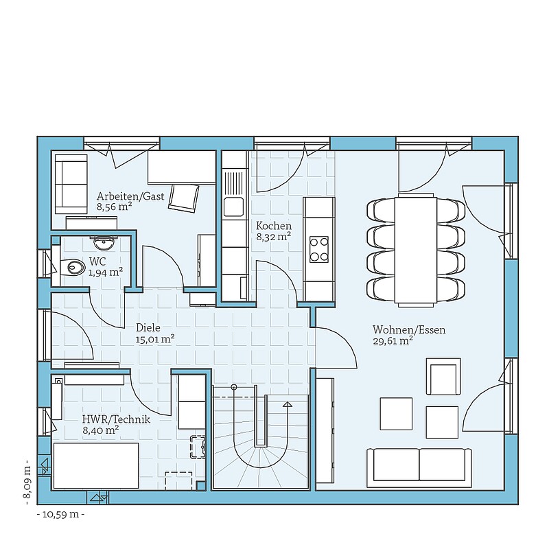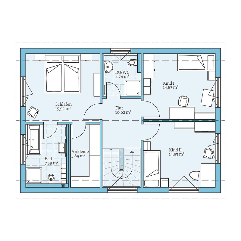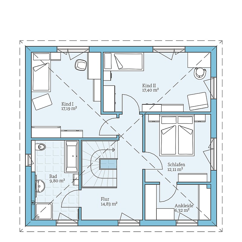 Einfamilienhaus-Grundrisse mit 169 m² Grundfläche