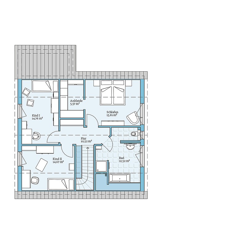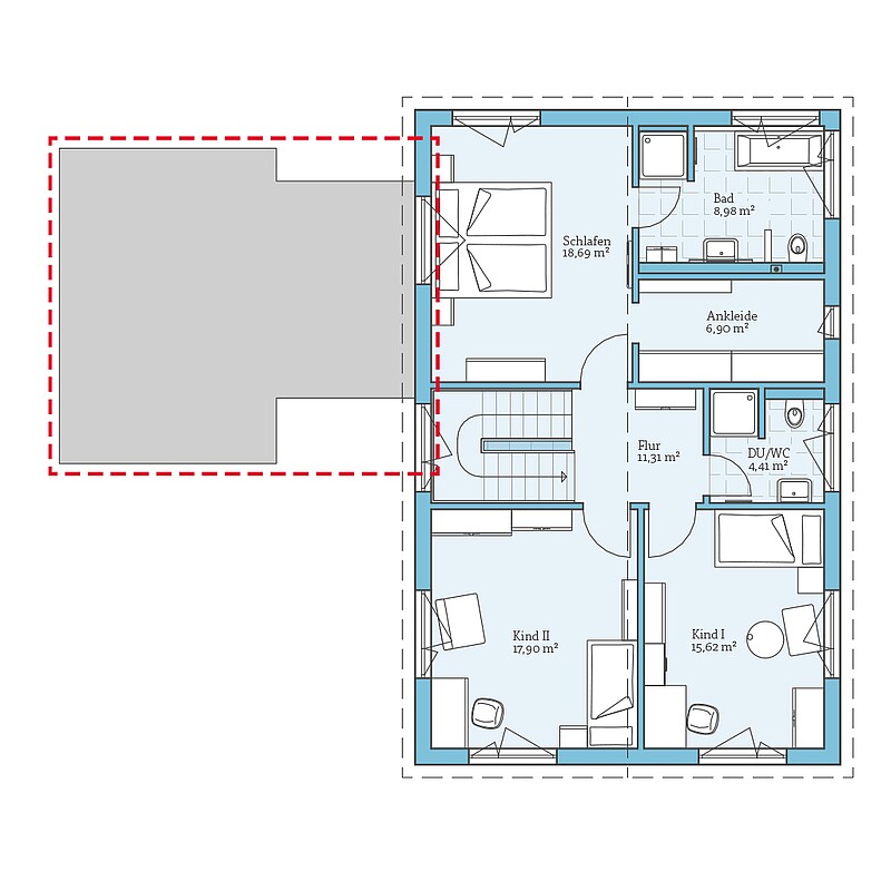 Derzeit im Trend liegt ein separater Elternbereich im Obergeschoss bestehend aus Schlafzimmer, Ankleide, Bad und eventuell einem Hobbyraum oder einer Sauna, der im Gesamten durch eine Tür vom restlichen Haus abgetrennt ist. Die Vorteile hierbei sind