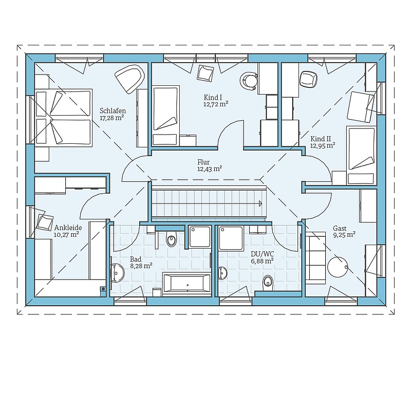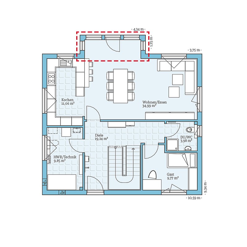Einfamilienhaus-Grundrisse mit 137 m² Grundfläche – Planungsoption Zwerchgiebel