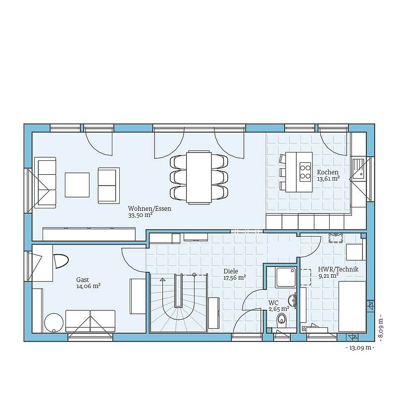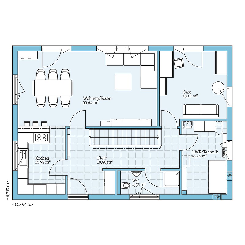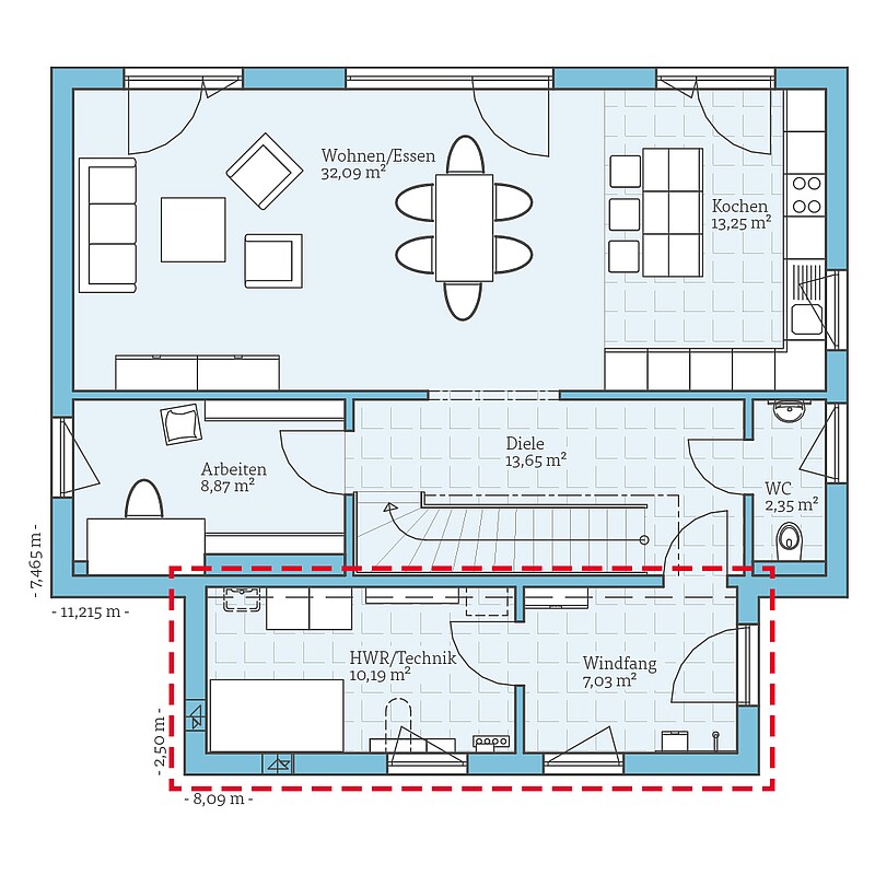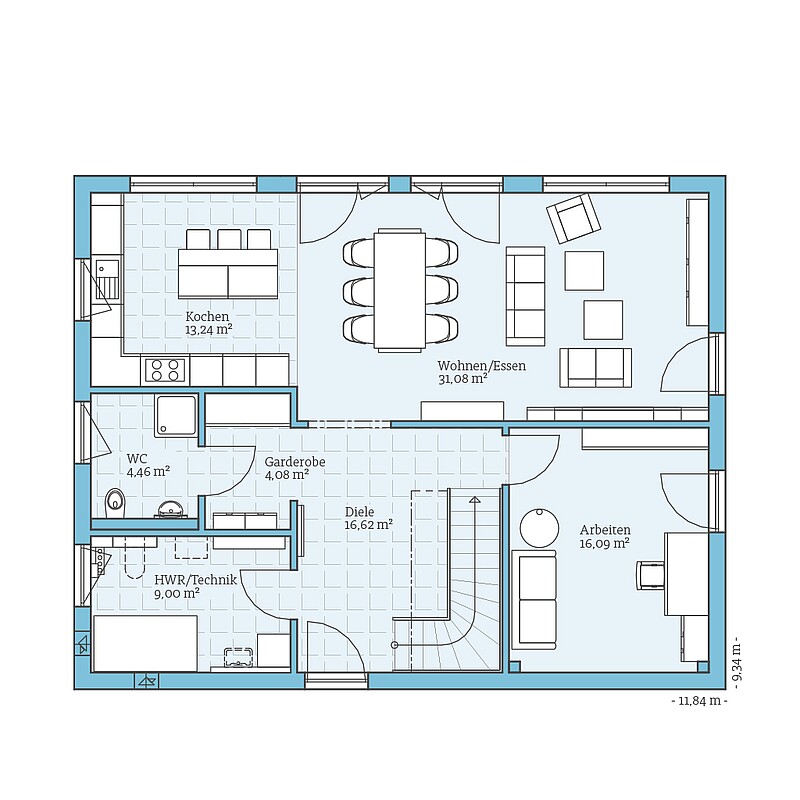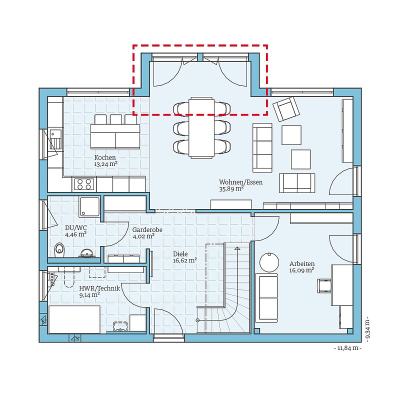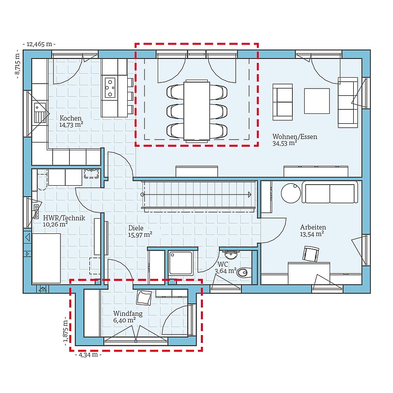 Einfamilienhaus-Grundrisse mit 139 m² Grundfläche – Planungsoption Windfang