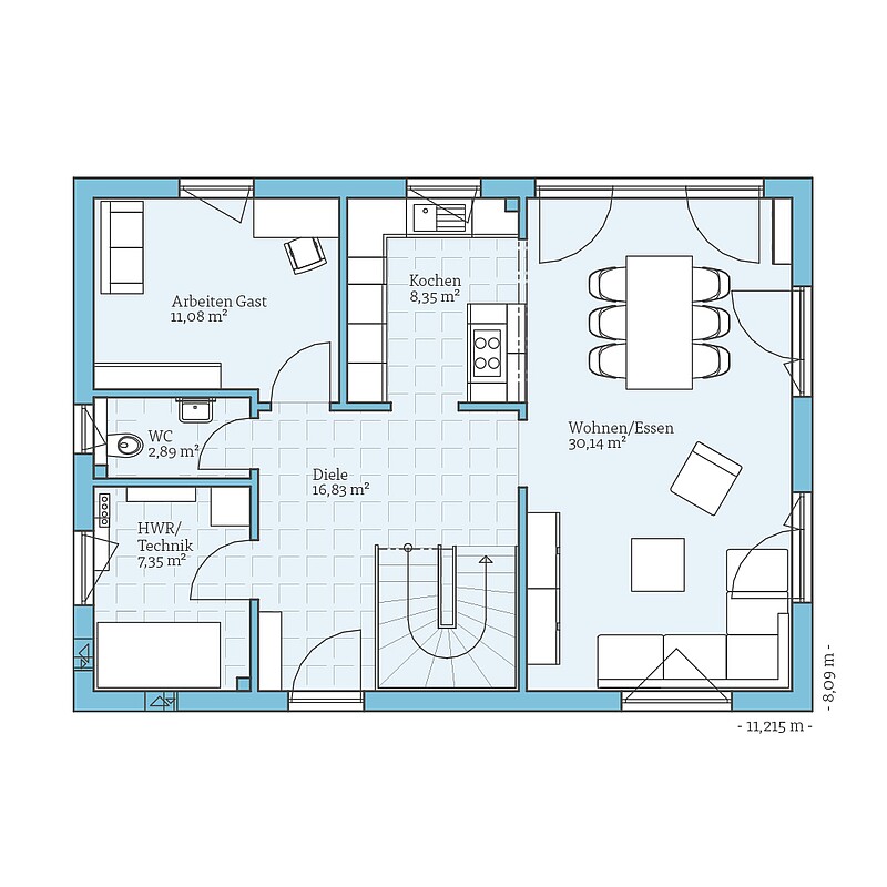 Einfamilienhaus-Grundrisse mit 183 m² Grundfläche – Planungsoption Windfang & Luftraum über dem Essbereich
