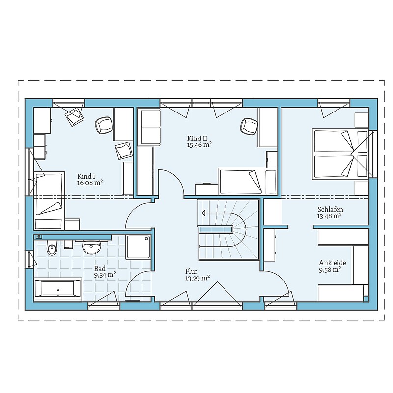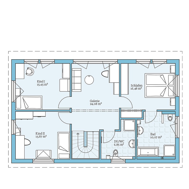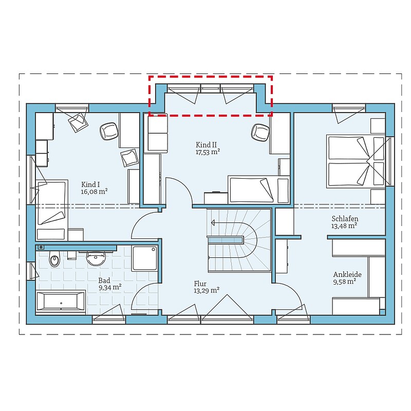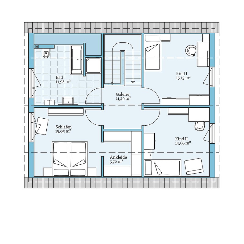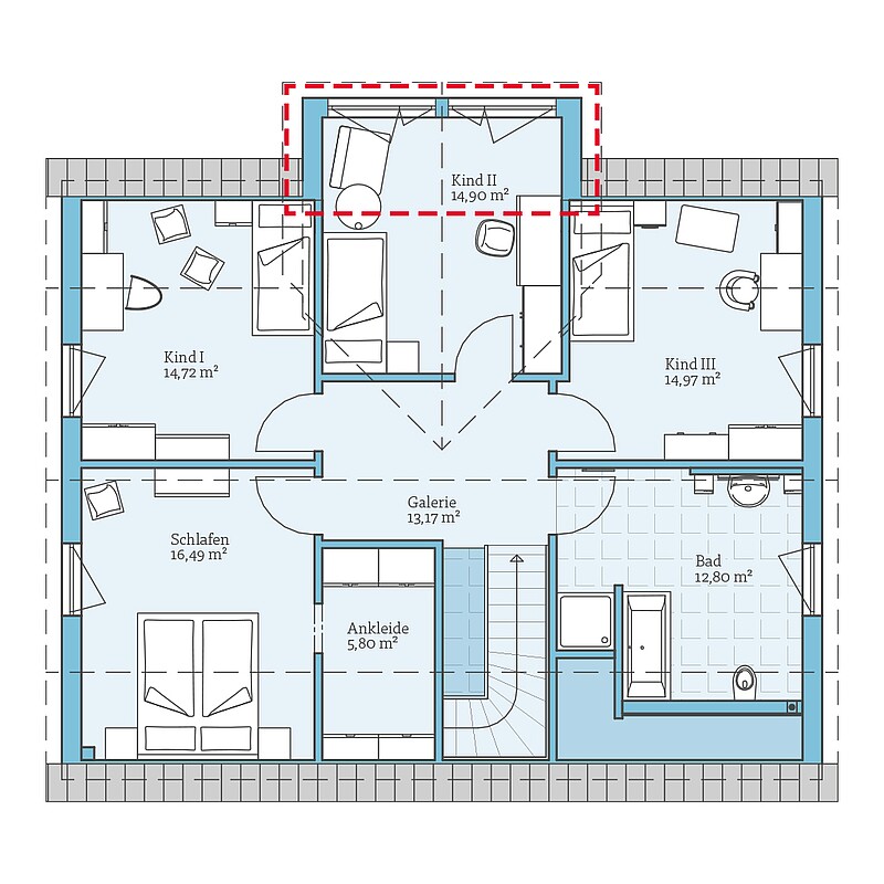 - Spielen Ihre Kinder eher in ihrem eigenen Zimmer? Planen Sie die Größe der Zimmer entsprechend. Schaffen Sie alternativ Spielzimmer oder planen Sie genügend Platz in Fluren oder Galerien ein.