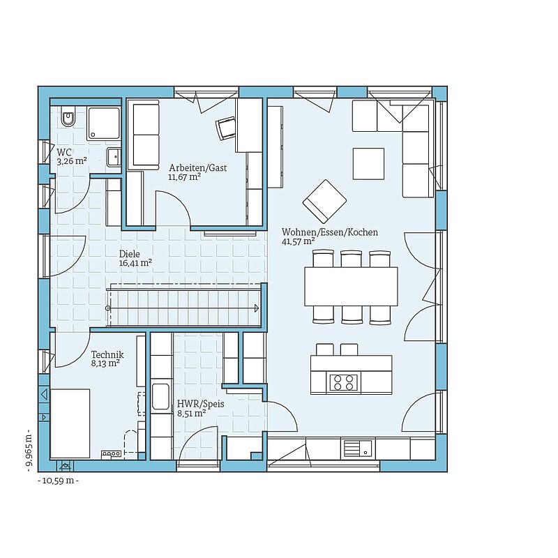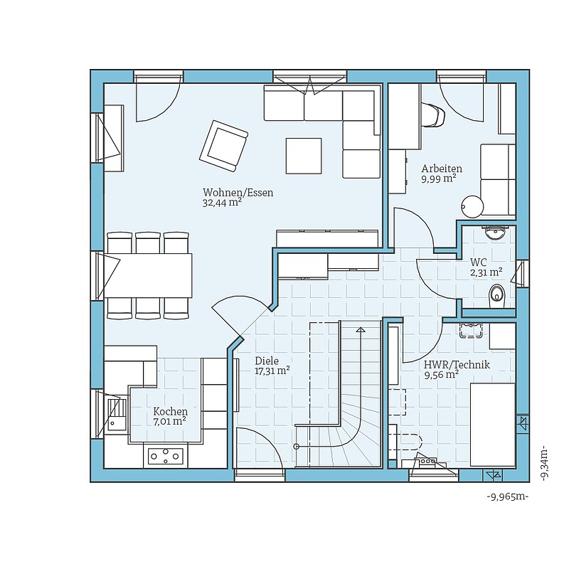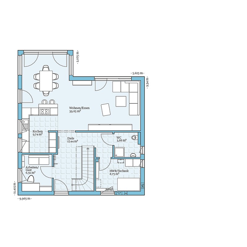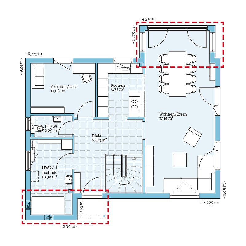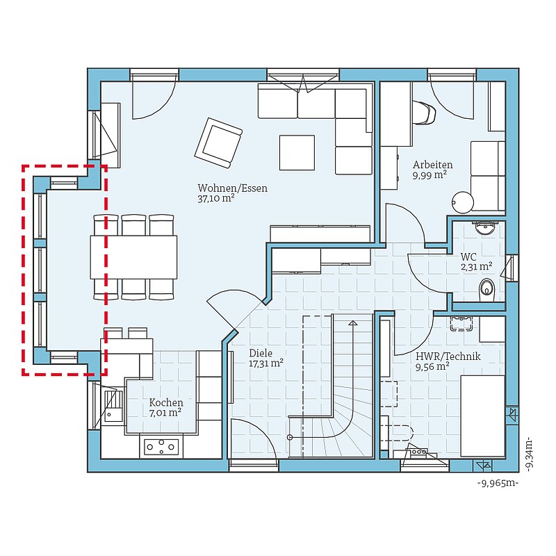 - Spielen Ihre Kinder eher in ihrem eigenen Zimmer? Planen Sie die Größe der Zimmer entsprechend. Schaffen Sie alternativ Spielzimmer oder planen Sie genügend Platz in Fluren oder Galerien ein.