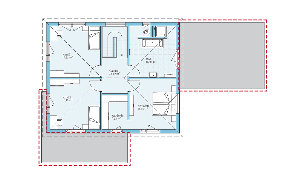 Einfamilienhaus-Grundrisse mit 182 m² Grundfläche – Planungsoption Zwerchgiebel