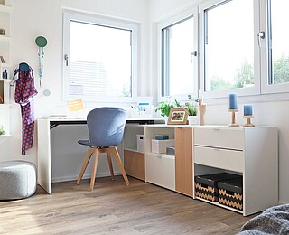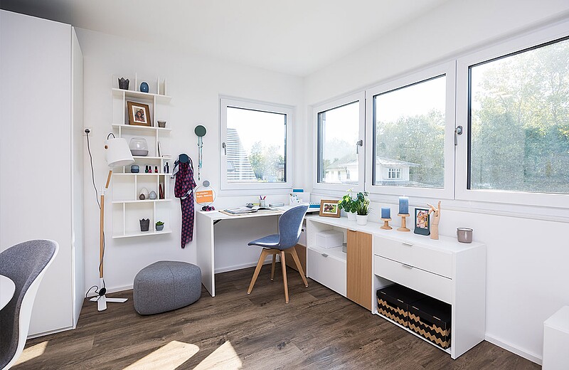 Besonderes Augenmerk liegt bei der Grundrissplanung für Großfamilien auf den Kinderzimmern. Das Kinderzimmer dient Kindern als Ort zum Spielen und Schlafen und als Rückzugsmöglichkeit. Kleinere Kinder teilen oft gerne ein Zimmer mit einem Geschwisterkind in ähnlichem Alter. Wenn die Kinder aber älter werden und gerne Freunde einladen oder in Ruhe ihre Schularbeiten erledigen möchten, profitieren sie von einem eigenen Zimmer und schätzen die Privatsphäre. Bis es soweit ist, kann man das zukünftige Kinderzimmer aber auch als Gäste- oder Arbeitszimmer nutzen.