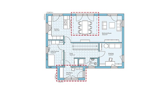 Grundriss großes Haus mit 183 m² Grundfläche – Planungsoption Windfang & Luftraum über dem Essbereich