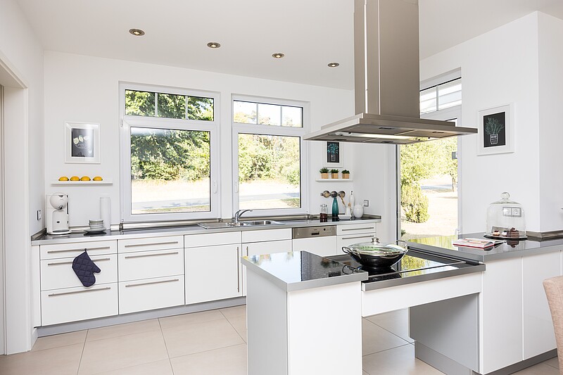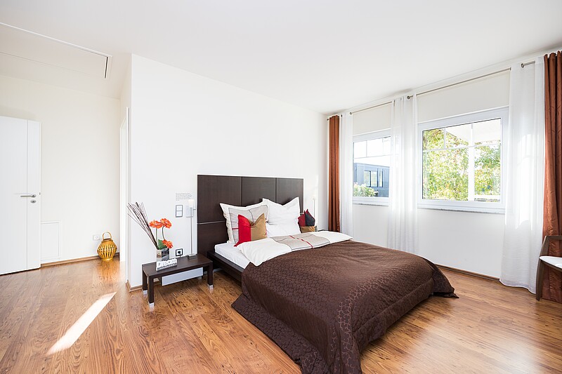 Gerade im Hinblick auf komfortables und barrierefreies Wohnen im Alter bietet sich z. B. das Raumkonzept des Bungalow 139 mit Walmdach an.