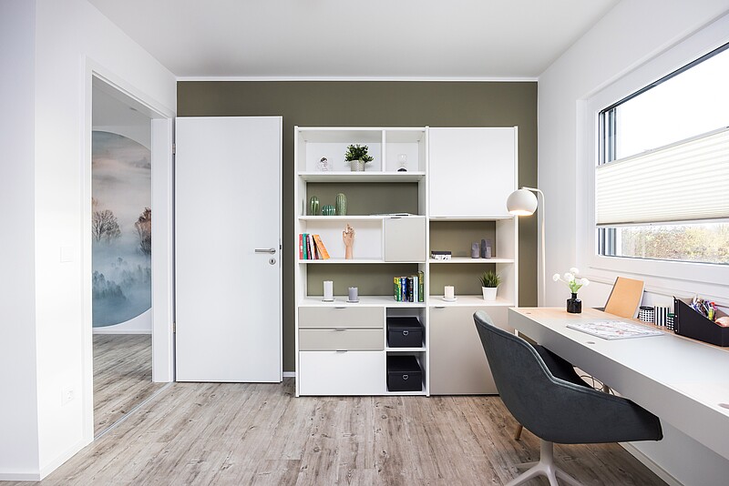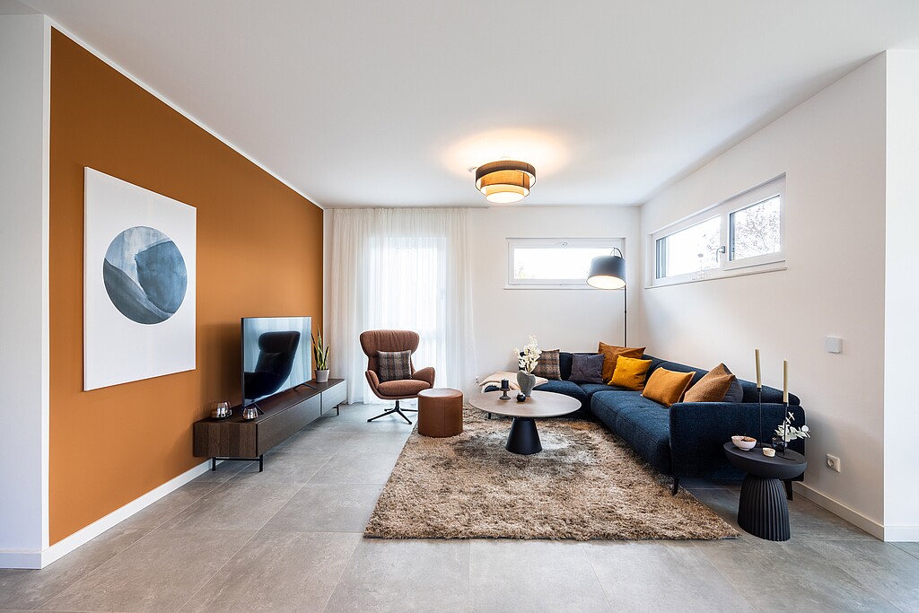 Herzstück der Wohnungen ist der offene Wohn-, Ess- und Kochbereich, in dem große Fensterflächen für eine freundliche Wohnatmosphäre sorgen. Daran schließt sich jeweils ein geschützter Sitzplatz im Freien an, der sicher schnell zu einem Lieblingsort wird: im Erdgeschoss eine Terrasse, in den Obergeschossen ein Balkon.
