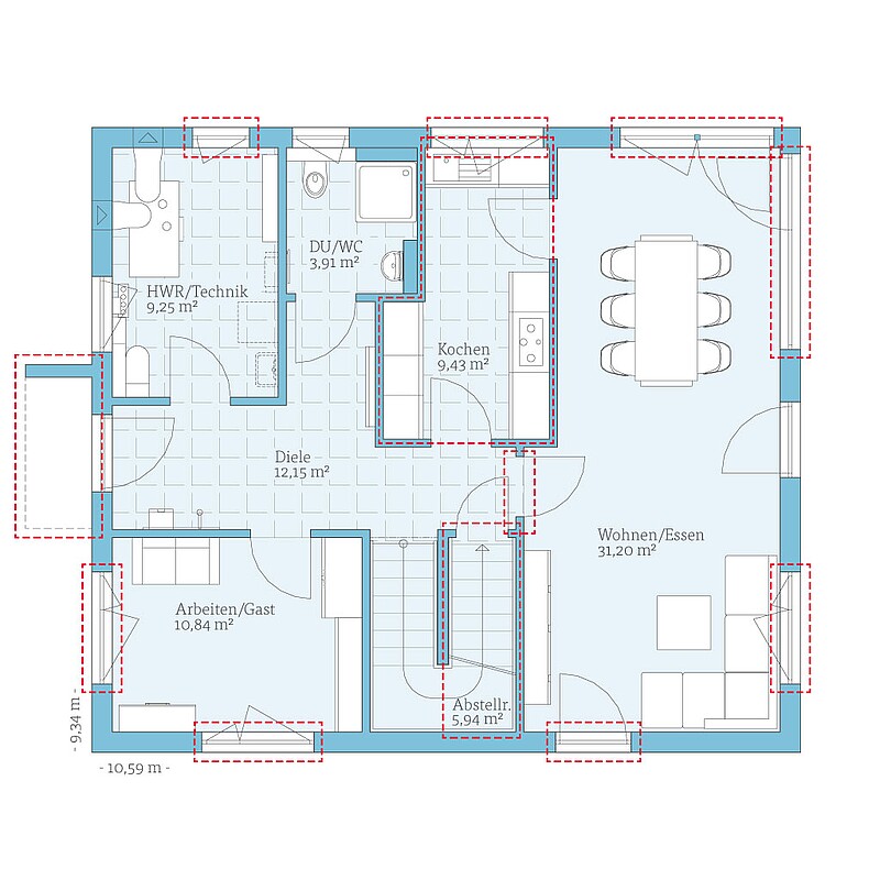 Da die Häuser aus der QNG+-Line seriell gefertigt werden, ist keine individuelle Planung möglich. Trotzdem stehen Ihnen einige Planungsmöglichkeiten offen: