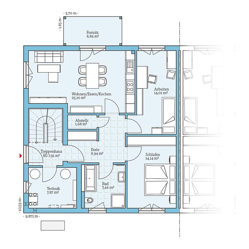 Bekommen Sie durch die Grundrisse einen Eindruck von unserem Fertighaus aus der QNG⁺-Line.