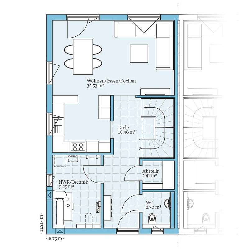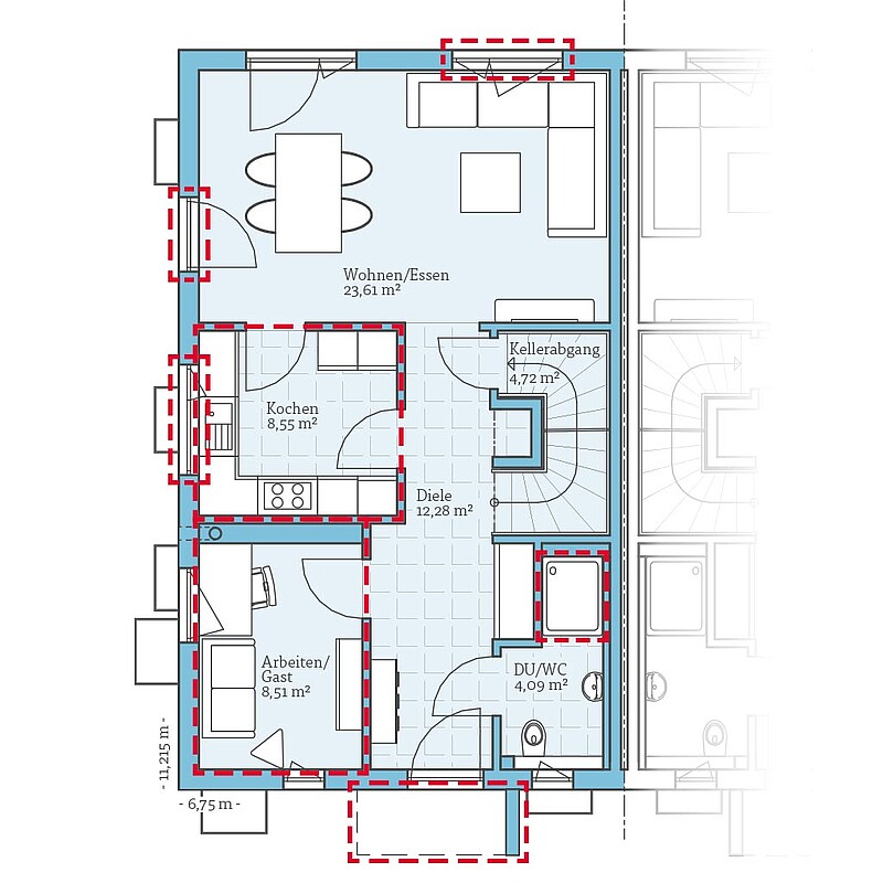 - Mit Keller: Gäste- oder Arbeitszimmer statt Hauswirtschafts- und Technikraum