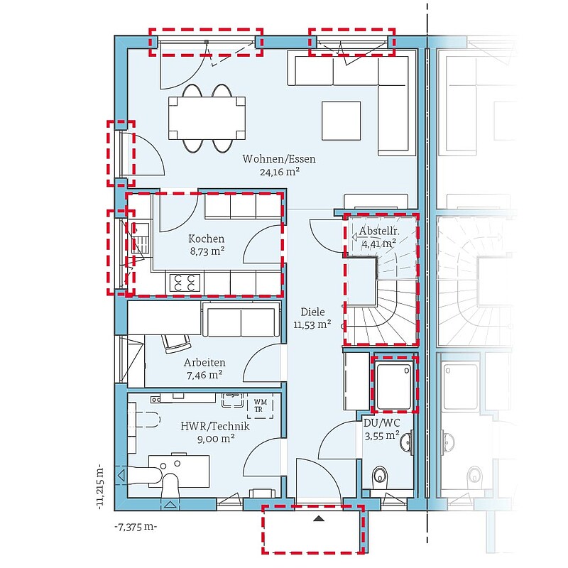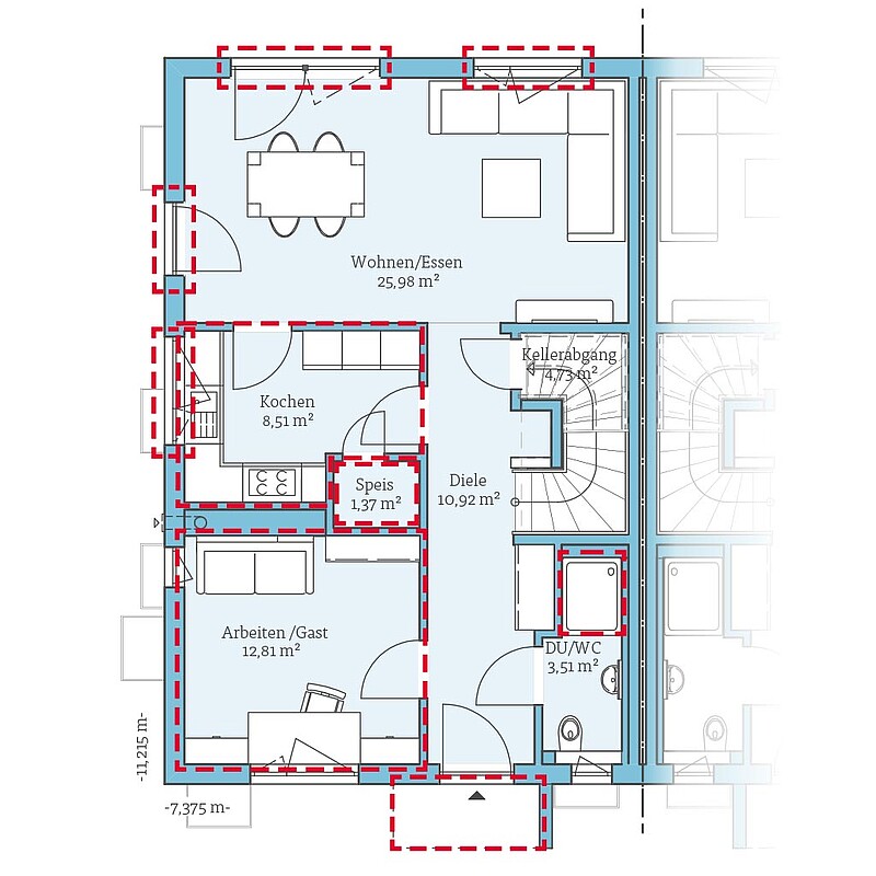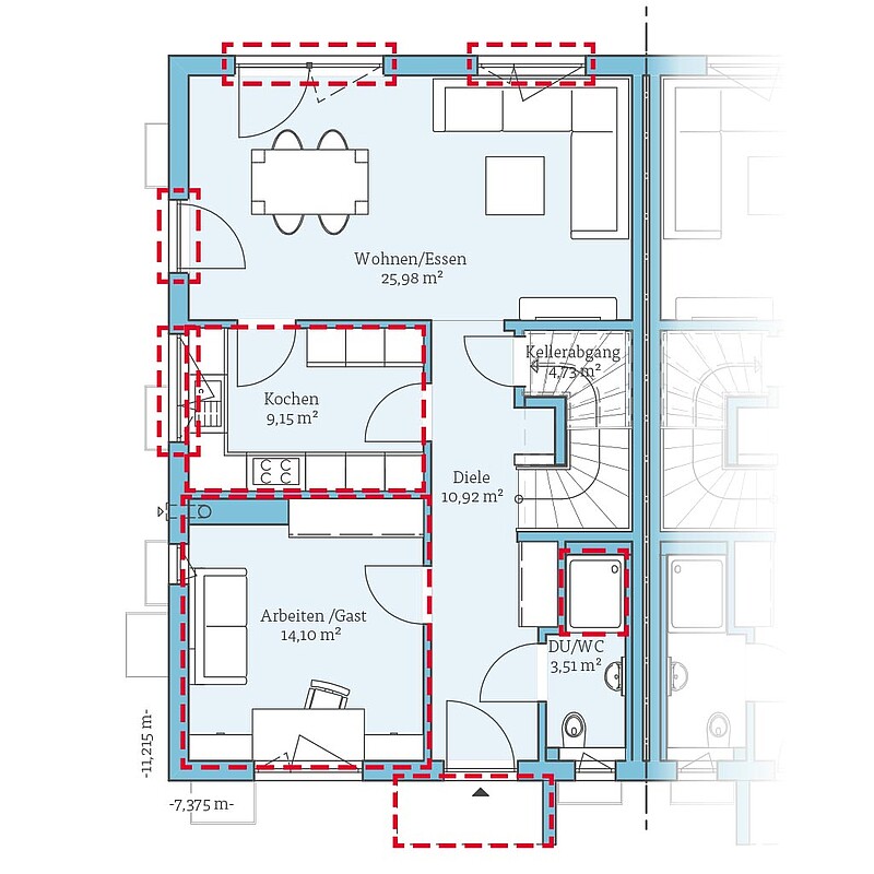 - Mit Keller: Gäste- oder Arbeitszimmer statt Hauswirtschafts- und Technikraum