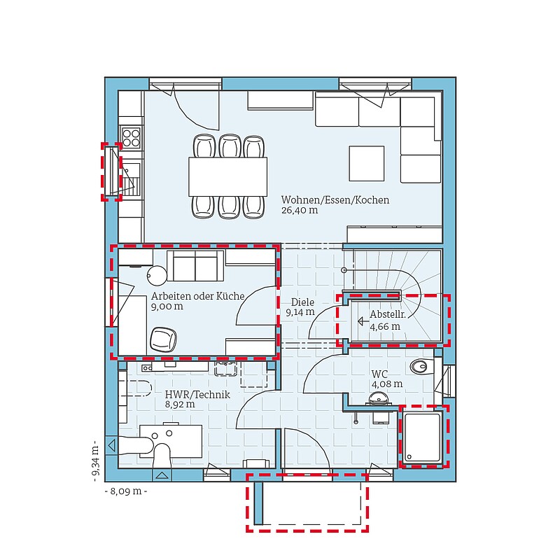 Da die Häuser aus der QNG+-Line seriell gefertigt werden, ist keine individuelle Planung möglich. Trotzdem stehen Ihnen einige Planungsmöglichkeiten offen: