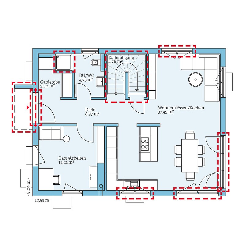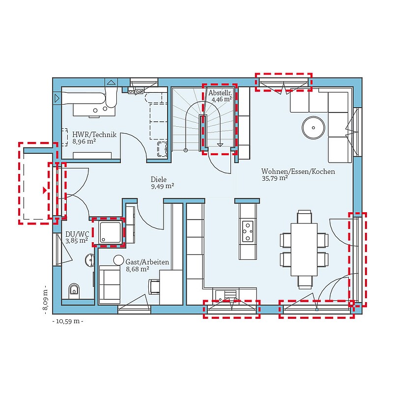 Da die Häuser aus der QNG+-Line seriell gefertigt werden, ist keine individuelle Planung möglich. Trotzdem stehen Ihnen einige Planungsmöglichkeiten offen: