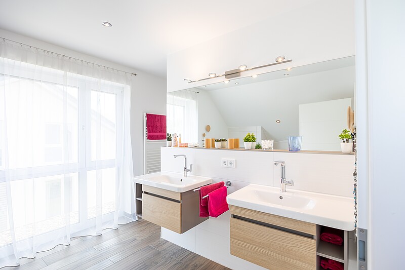 Diese Planungsvariante unseres Hausentwurfs Variant 35-235 bietet jede Menge Raum für große Familien: Ein separater Elternbereich mit großem Schlafzimmer, Wellnessbad und Ankleidezimmer ist im Erdgeschoss untergebracht, während das Dachgeschoss zu einem eigenen Reich für die Kinder wird. Dort ist neben vier Kinderzimmern noch genug Platz für ein Gästezimmer – und damit es zur morgendlichen Rushhour keinen Stau gibt, stehen für die Kinder gleich zwei Bäder zur Verfügung.