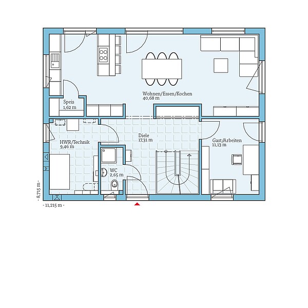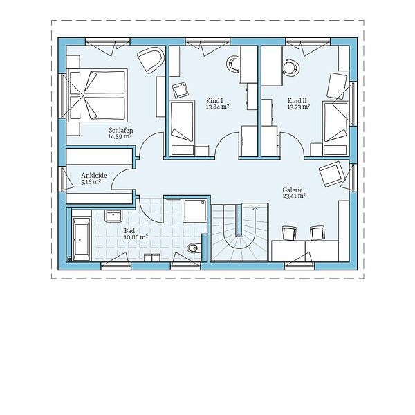 Ein Hausentwurf, viele Variationsmöglichkeiten: Der Grundriss des Vita 165 basiert auf der Planung der Villa 165, des Hanse Haus Musterhauses in Frechen bei Köln.