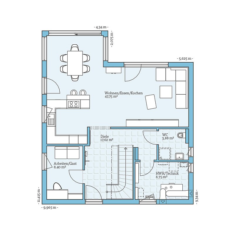 - Gäste-WC (optional mit Duschmöglichkeit)