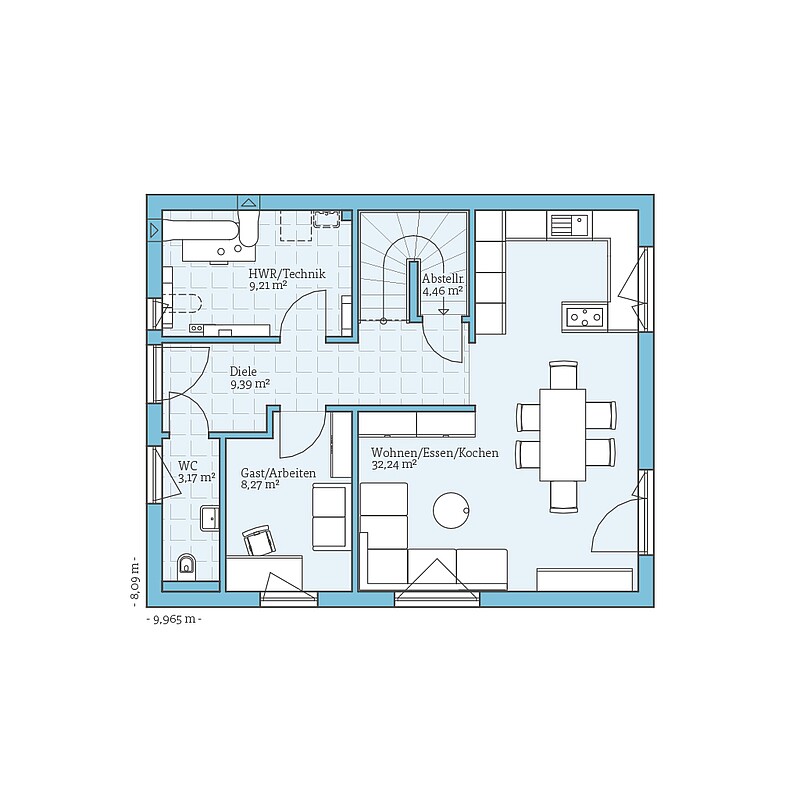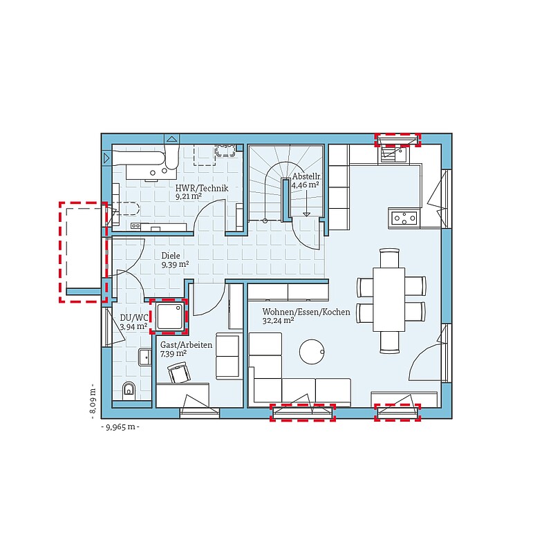 - Gäste-WC (optional mit Duschmöglichkeit)
