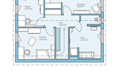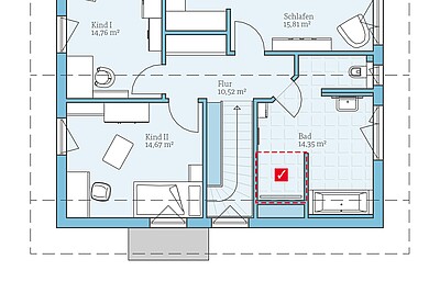 Standard-Badezimmer im DachgeschossWir möchten das Badezimmer so planen, wie es im Standard-Grundriss vorgesehen ist. -