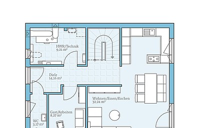 Bei unserer QNG+-Line können Sie zwischen unterschiedlichen Ausbaustufen wählen. Definieren Sie selbst, welche Leistungen Hanse Haus übernehmen soll und welche Arbeiten Sie in Eigenleistung erbringen möchten.