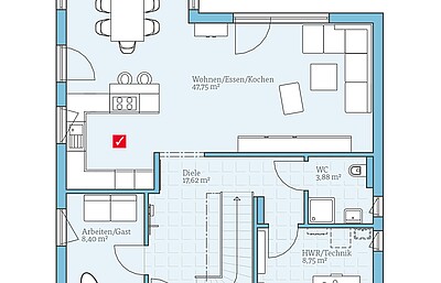 Bei unserer QNG+-Line können Sie zwischen unterschiedlichen Ausbaustufen wählen. Definieren Sie selbst, welche Leistungen Hanse Haus übernehmen soll und welche Arbeiten Sie in Eigenleistung erbringen möchten.