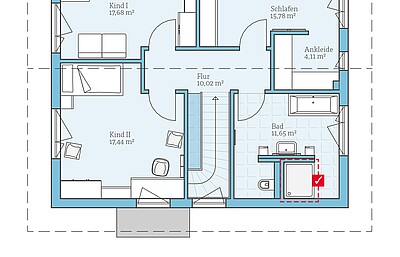 Standard-Badezimmer im ObergeschossWir möchten das Badezimmer so planen, wie es im Standard-Grundriss vorgesehen ist. -