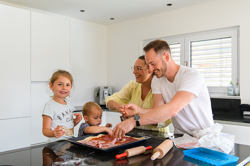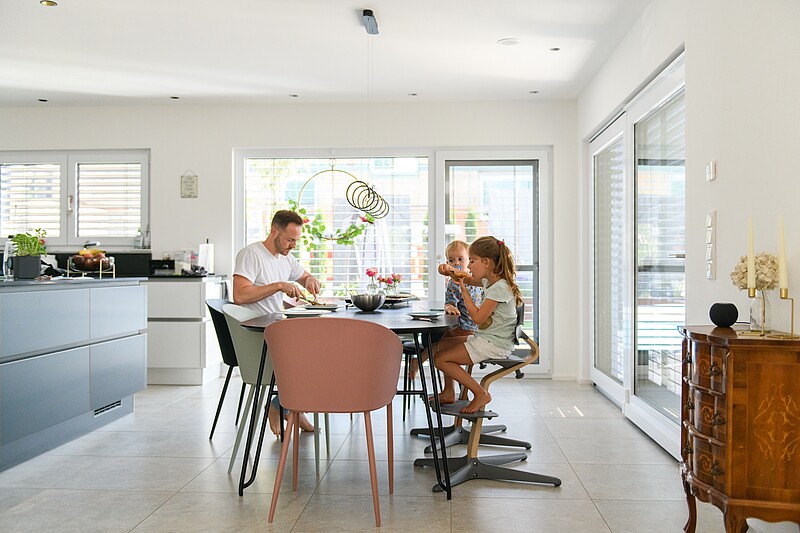 Der Grundriss des modernen Einfamilienhauses wurde so geplant, dass er perfekt zu den Vorstellungen und dem Alltag der Familie Dürr passt.