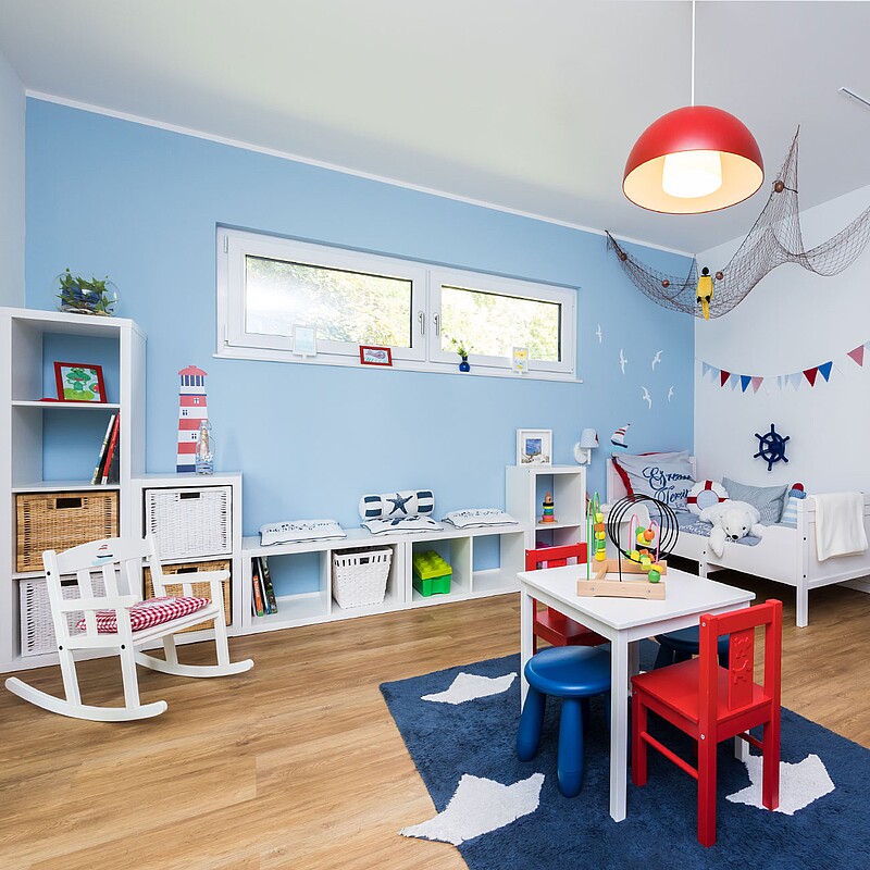 Heller Wohnraum ganz ohne Dachschrägen – erleben Sie in unserem Musterhaus die Vorteile eines Hauses mit zwei Vollgeschossen. Auf 179 m² Wohnfläche bietet das Einfamilienhaus mit Walmdach viel Platz zum Wohlfühlen.