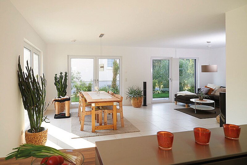 “Until now, sustainability has always meant for us – above all – a reduction in energy consumption and the low heating costs this entails. However, we learned just how many other aspects sustainability has over the course of our construction project – a Variant prefabricated house with pitched roof,” says homeowner Mike Hammer.