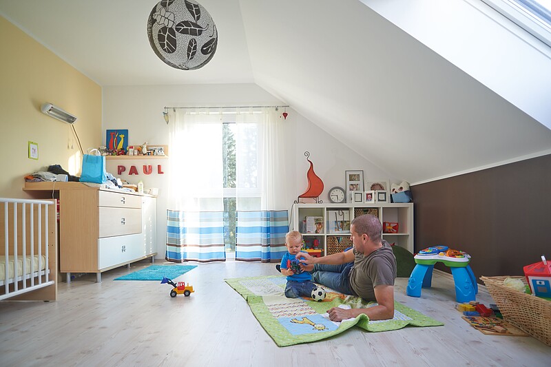 Of course, nobody has to freeze in the house or take a cold shower because of this. The good thermal insulation of the KfW Efficiency House 55 keeps the heat generated by the gas condensing boiler safely in the house, whilst the ventilation system provides fresh air and simultaneously transfers the heat of the exhaust air to the supply air.