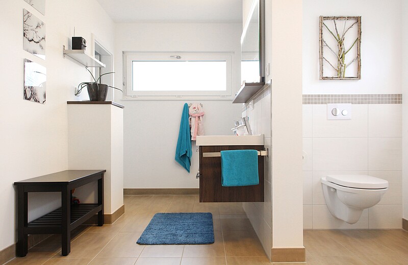 Thanks to the barrier-free guest toilet with shower on the ground floor, the current study can later be converted into a bedroom. Then living on one floor will be possible – without climbing any stairs. That was only a small effort today, which will be priceless later on,” says Stefan Olschewski about this planning option for old age.