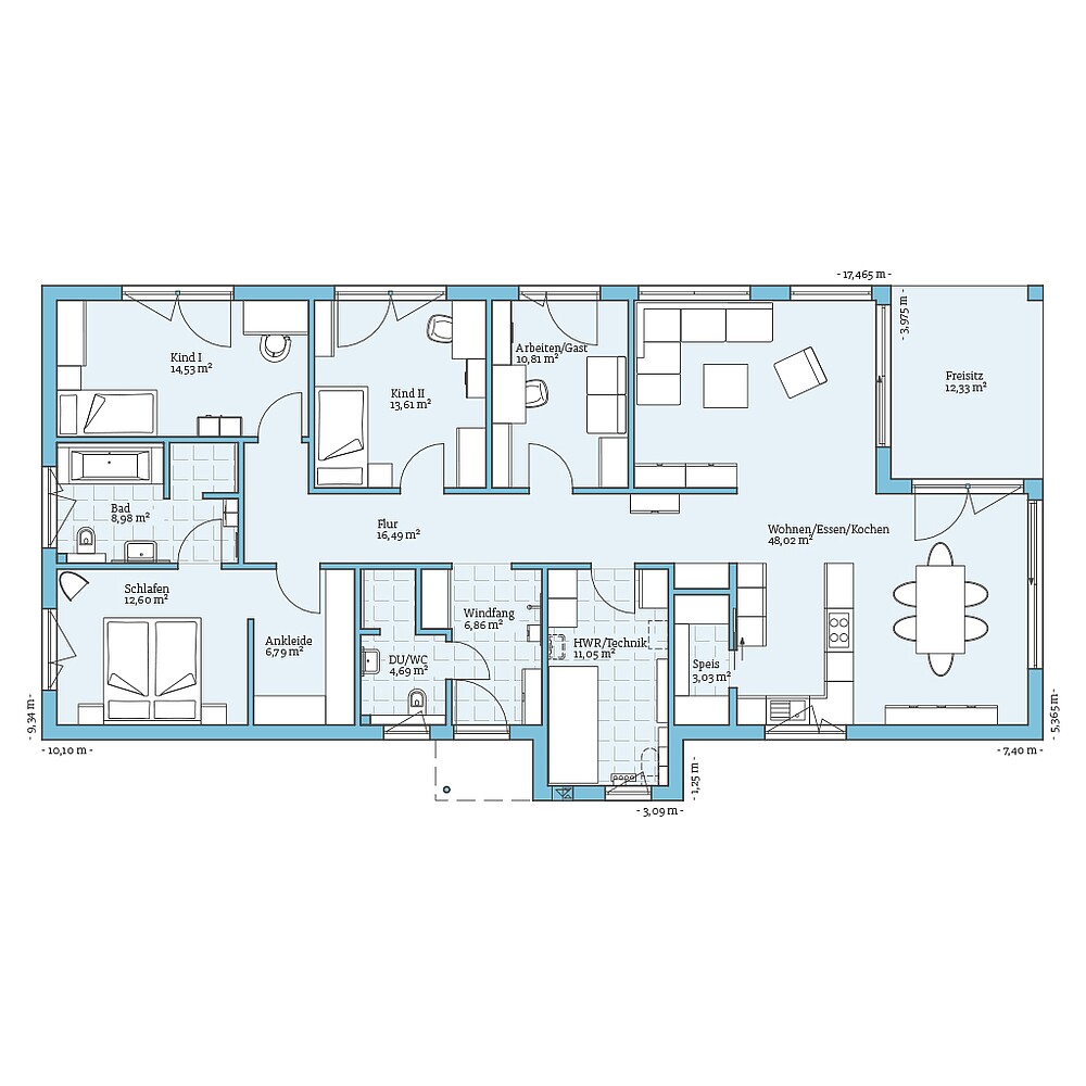 Get an impression of this house through the floor plans. We will show you our planning suggestions, which of course can be customised on request.